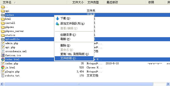 使用 FTP 软件登录您的服务器,将服务器上以下目录、以及该目录下面的所有文件的属性设置为 777,Win 主机请设置 internet 来宾帐户可读写属性。