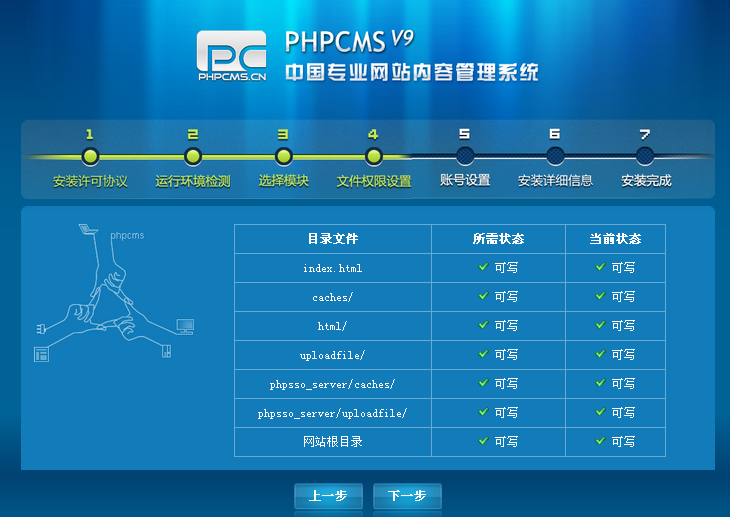检测成功,点击“下一步”,即进入目录权限检测界面,如下图所示