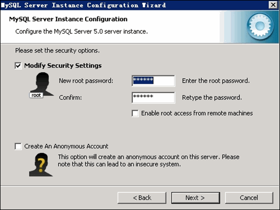 修改设定 root 用户密码,注意:不要启动远程连接模式! 如图 12 所示:
