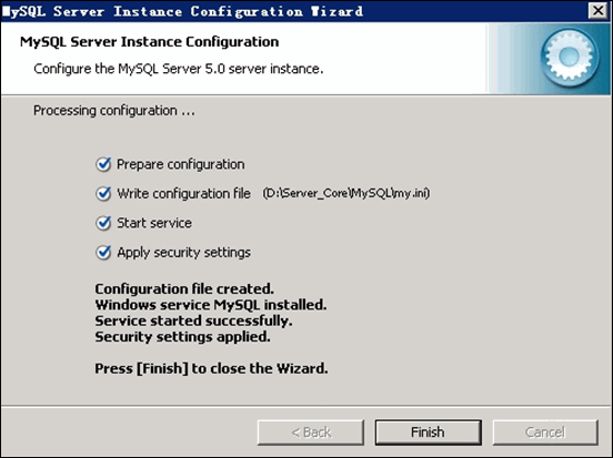 待文件复制安装完毕后,进行 MySQL 设置界面,单击 Finish 。如图 4 所示: