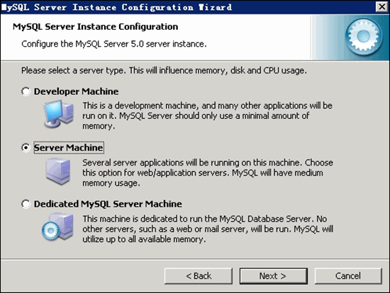 选择 MySQL 运行模式:Server Machine 如图 6 所示: