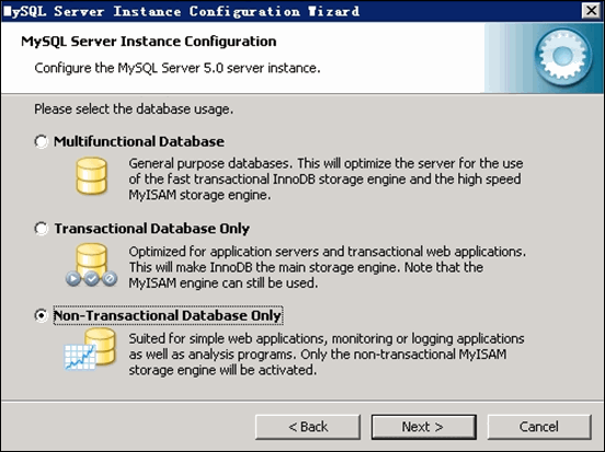 选择 MySQL 数据库默认存储方式:Non-Trans Only ( MYISAM) 如图 7 所示: