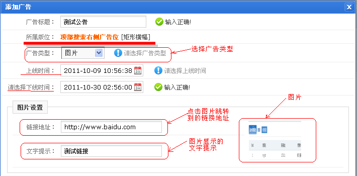 版位类型:矩形横幅,固定位置,漂浮移动,对联广告,图片轮换广告,图片列表广告,文字广告,代码广告。这里不做详细展示介绍。