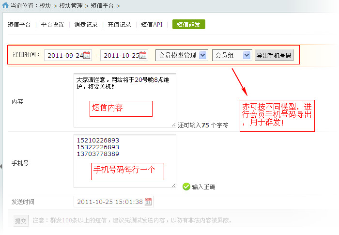 用于管理短信平台的配置 查看消息记录 充值记录 短信群发等。