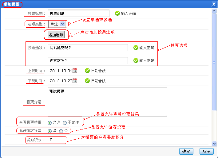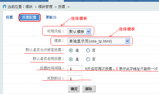 奖励积分:如果投票用户为会员,则奖励积分2.管理投票