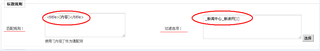 标题采集配置: 从网页<title></title>里取标题,并去除不需要的字符。如下图