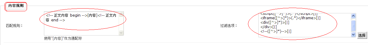 内容采集配置: 新浪新闻最终页,新闻内容都包含在 <!-- 正文内容 begin --> <!-- 正文内容 end --> 之间,而且这二个结点,在整个页面源代码中具有唯一性。所以可以以此为规则取内容。并对内容进行过滤。如下图