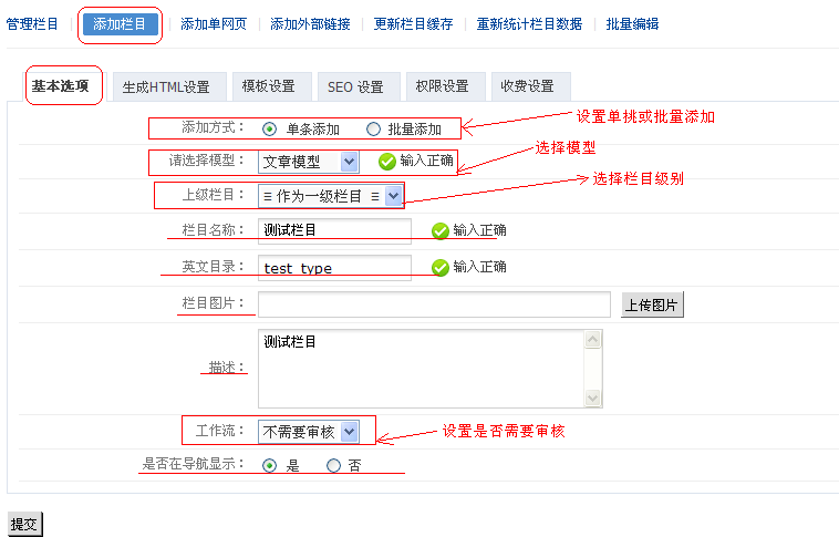 a,添加测试栏目