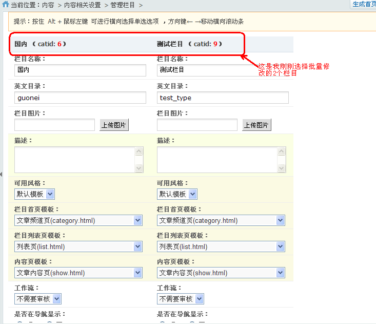方便用户在生成静态页面完成后,无需手动去更新各内容页。只需选择就能批量更新内容页即可。