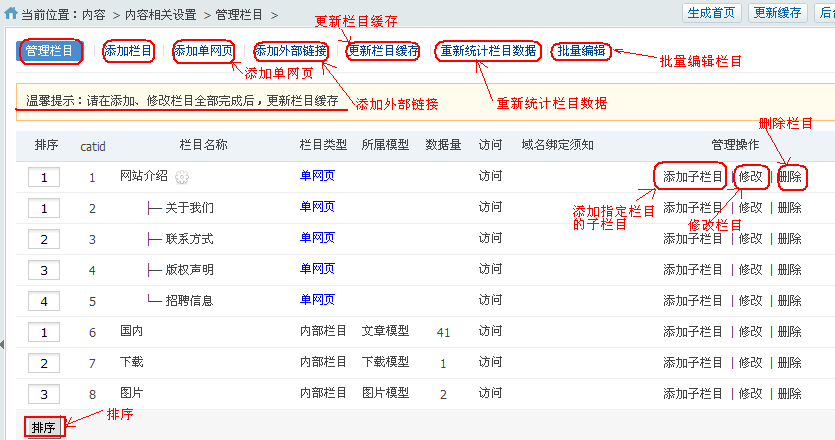2.管理栏目