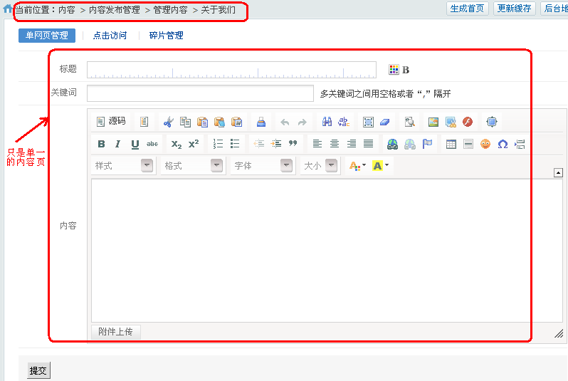 2,单网页相当于内容页,只能是单一的信息页。如下图:
