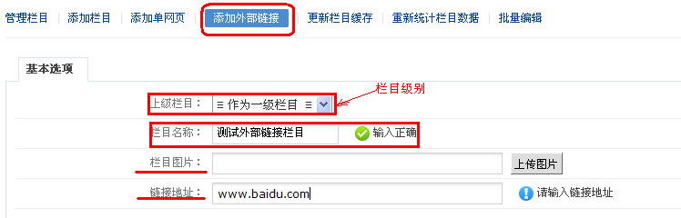 添加成功后,到“栏目管理”找到添加的外部链接,点击“访问”(如下图)就跳转到指定页面了。