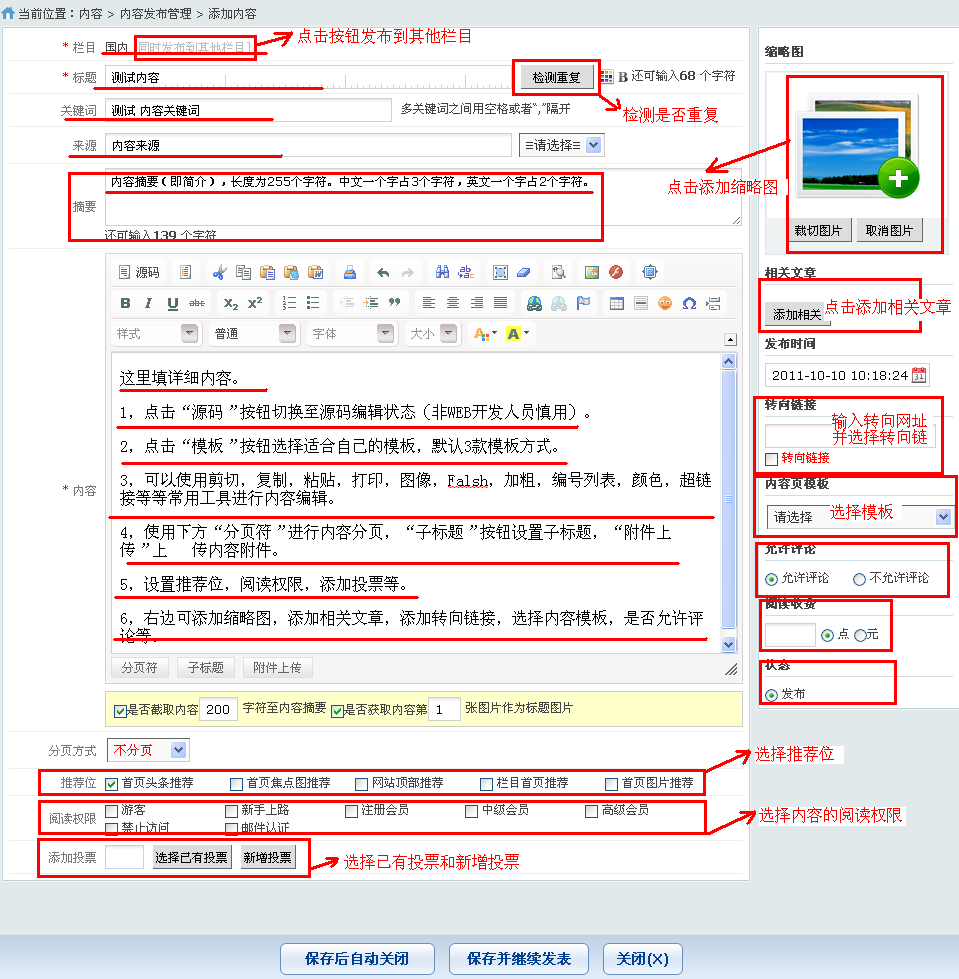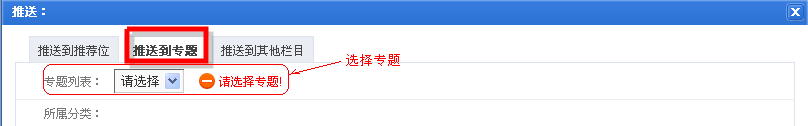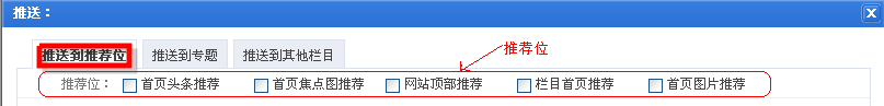 可以选择内容推送到推荐位,专题和其他栏目。如下图: