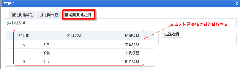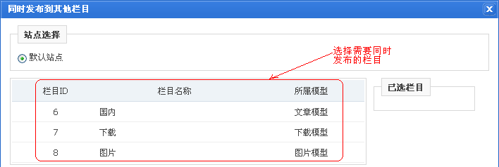 点击“同时发布到其他栏目”按钮时弹出如下页面: