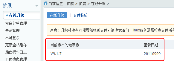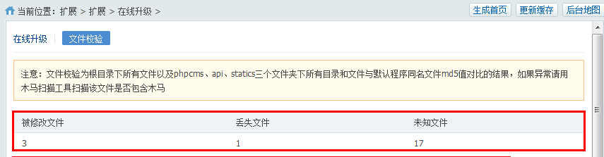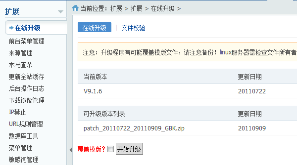 本节提供了在线升级网站程序以及网站核心文件效验功能
