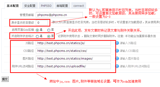 此基本配置,用以设置网站相关文件的存放目录。如CSS,JS,图片等。