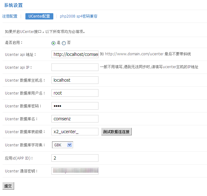 2.登录phpsso后台,系统设置 > uc设置