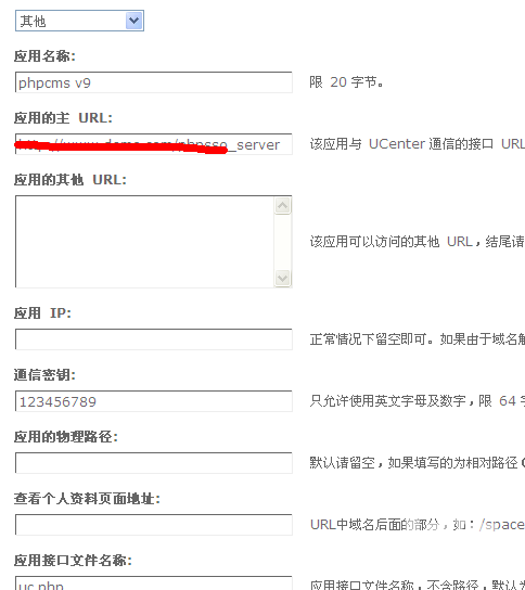 3.登录Ucenter后台,添加应用,配置相应的信息