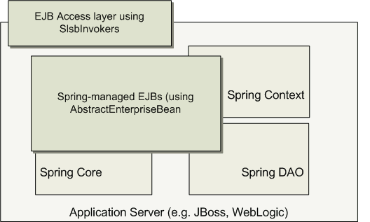 Spring还为EJB提供了 数据访问和抽象层,让你可以复用已存在的POJO并将他们包装在无状态SessionBean中,以便在可能需要声明式安全(EJB中的安全管理,译者注)的非安全的Web应用中使用。