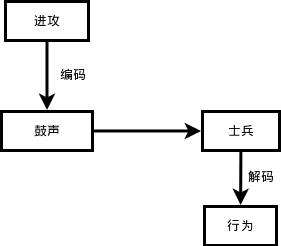 古代打仗,击鼓进攻、鸣金收兵,这就是编码。把要传达给士兵的命令对应为一定的其它形式,比如命令“进攻”,经过如此的信息传递: