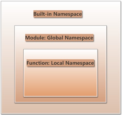 那么程序在查询上述三种命名空间的时候,就按照从里到外的顺序,即:Local Namespaces --> Global Namesspaces --> Built-in Namesspaces