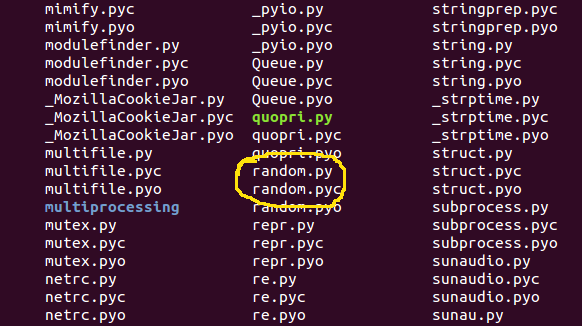 这里非常明显的告诉我们,random模块的文件就是: /usr/local/lib/python2.7/random.py(注意:这个地址是我的计算机中的地址,可能跟看官的不一样,特别是如果看官用的是windows,肯定跟我这个不一样了。)