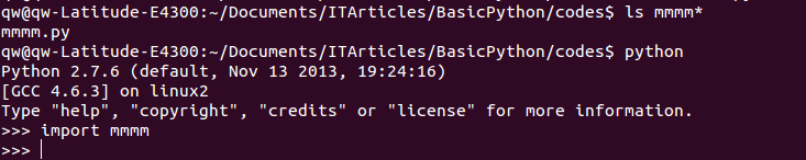 图示是文件所在目录,并且在该目录下打开了python的交互模式(我这是在ubuntu下,看官是别的操作系统的化,注意路径,如果遇到问题,可以暂时搁置,看下文)。