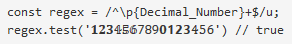 注意,这两种类只对Unicode有效,所以使用的时候一定要加上u修饰符。如果不加u修饰符,正则表达式使用\p和\P会报错,ECMAScript预留了这两个类。
