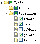 easyui 的树(Tree)插件允许您创建一个复选框树。如果您点击一个节点的复选框,这个点击的节点信息将向上和向下继承。例如:点击 'tomato' 节点的复选框,您将会看见 'Vegetables' 节点现在仅仅选中部分。