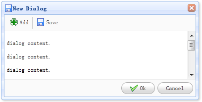 <div id="dd" class="easyui-dialog" title="My Dialog" style="width:400px;height:200px;" data-options="iconCls:'icon-save',resizable:true,modal:true"> Dialog Content. </div>