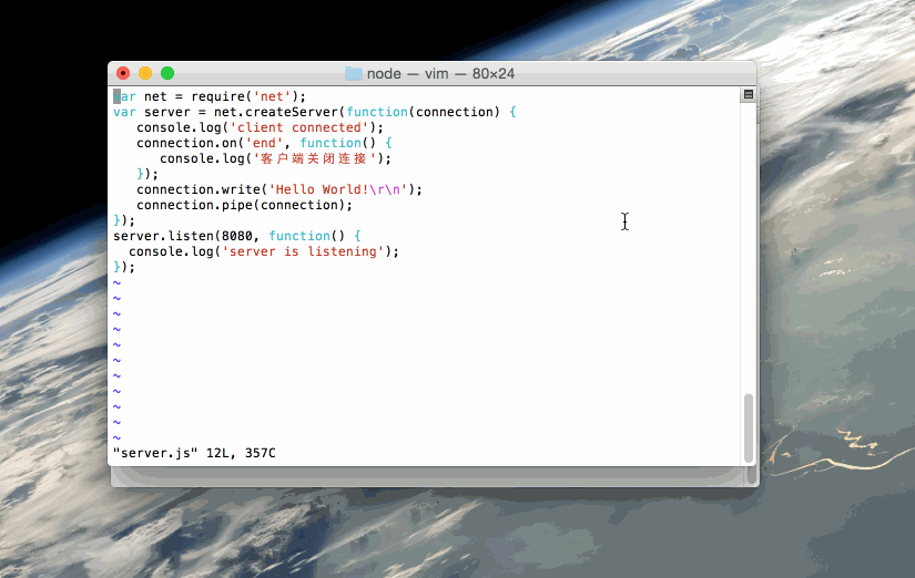 $ node server.js server is listening # 服务已创建并监听 8080 端口