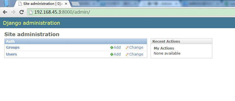 启动开发服务器,然后在浏览器中访问:http://yoursite:8000/admin/,得到如下界面: