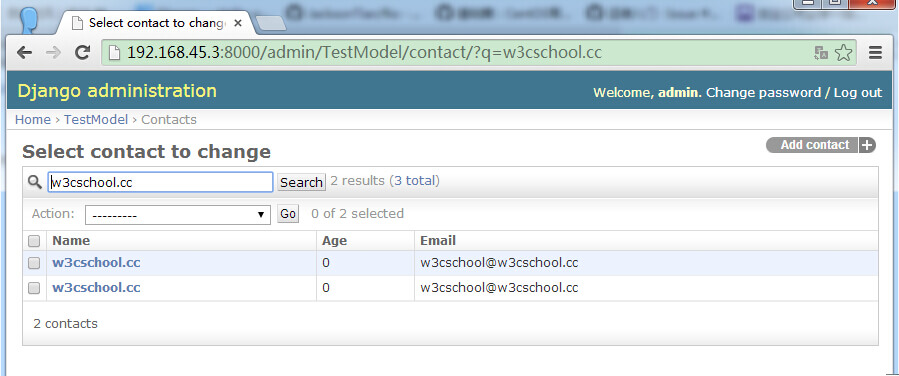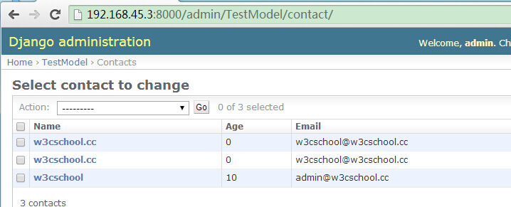 我们也可以自定义该页面的显示,比如在列表中显示更多的栏目,只需要在ContactAdmin中增加list_display属性: