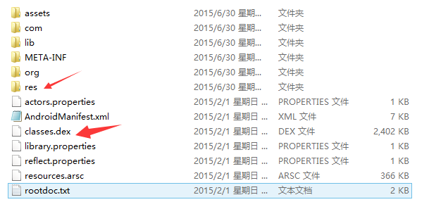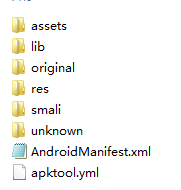 "反编译Apk",看上去好像好像很高端的样子,其实不然,就是通过某些反编译软件,对我们的APK进行反编译,从而获取程序的源代码,图片,XML资源等文件;不知道你有没有这样做过,看到一个别人的一个APP界面做得很精美,或者你看上别人的图片素材,简单点的,我们可以下载别人的APK,然后改下后缀名,改成xxx.zip,然后解压: 笔者随便解压了一个APK: