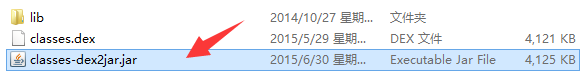 把下载好的dex2jar文件夹解压,apk解压后中的classes.dex复制到dex2jar.bat所在的目录下: