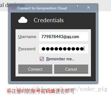 点击yes后会来到选择avd版本的界面,因为这上面什么设备都没有,我们需要连接到官网 获取各种版本的系统与硬件设备等,点击下方的connect,输入我们已经激活的账号密码: 邮箱与密码(笔者可能是网络问题,连续连了几次才成功的)