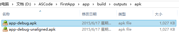 ⑦可以看到打包后的APK已经安详地躺在我们的app目录下了: