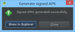⑥点击Finish稍等一会儿会出现下述提示,说明应用已经打包签名成功了: