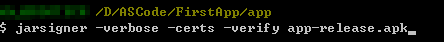 ⑧到第七步就已经打包签名完成了,如果你要验证是否签名,只需要输入下述cmd指令