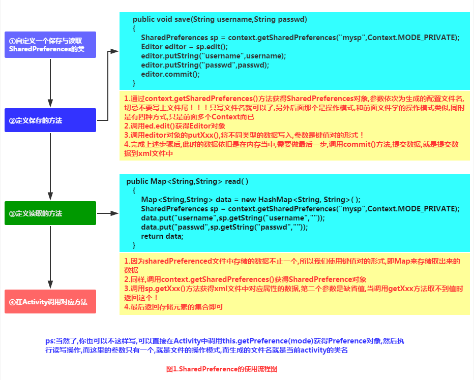 本节给大家介绍的是第二种存储用户数据的方式,使用SharedPreferences(保存用户偏好参数)保存数据, 当我们的应用想要保存用户的一些偏好参数,比如是否自动登陆,是否记住账号密码,是否在Wifi下才能 联网等相关信息,如果使用数据库的话,显得有点大材小用了!我们把上面这些配置信息称为用户的偏好 设置,就是用户偏好的设置,而这些配置信息通常是保存在特定的文件中!比如windows使用ini文件, 而J2SE中使用properties属性文件与xml文件来保存软件的配置信息;而在Android中我们通常使用 一个轻量级的存储类——SharedPreferences来保存用户偏好的参数!SharedPreferences也是使用xml文件, 然后类似于Map集合,使用键-值的形式来存储数据;我们只需要调用SharedPreferences的getXxx(name), 就可以根据键获得对应的值!使用起来很方便!