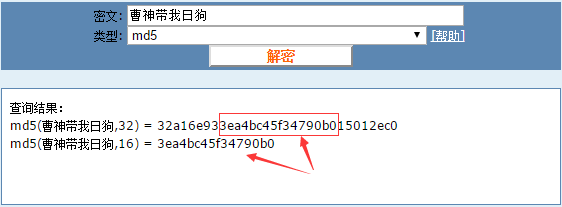 这就是加密过后的呵呵了,我们可以把这串密文拷贝到上面这个md5的在线解密网站: