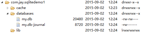 当我们调用上面的MyDBOpenhelper的对象的getWritableDatabase()就会在下述目录下创建我们的db 数据库文件: