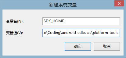 右键我的电脑 ——> 高级系统设置 -> 环境变量 -> 新建系统变量 -> 把SDK的platform-tools路径拷贝下: 比如笔者的:C:\Software\Coding\android-sdks-as\platform-tools