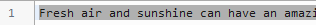 String data = "Fresh air and sunshine can have an amazing effect on our feelings. "