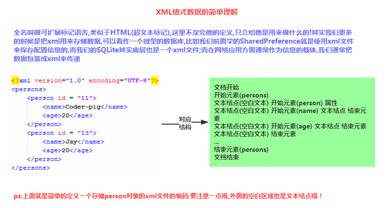 本节介绍了Android中三种常用的XML解析方式,DOM,SAX和PULL,移动端我们建议用后面这 两种,而PULL用起来更加简单,这里就不多说了,代码是最好的老师~本节就到这里,下节我们 来学习Android为我们提供的扣脚Json解析方式!谢谢~