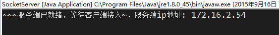 System.out.println("~~~服务端已就绪,等待客户端接入~,服务端ip地址: " + ip);