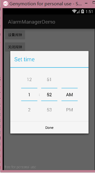 要说的是,此例子只在Android 4.4以下的系统可行,5.0以上并不可行,后续如果有5.0 以上AlarmManager的解决方案,到时再补上!另外,这里用set方法可能有点不准,如果要 更精确的话可以使用setExtra()方法来设置AlarmManager!