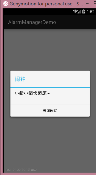 new AlertDialog.Builder(ClockActivity.this).setTitle("闹钟").setMessage("小猪小猪快起床~")