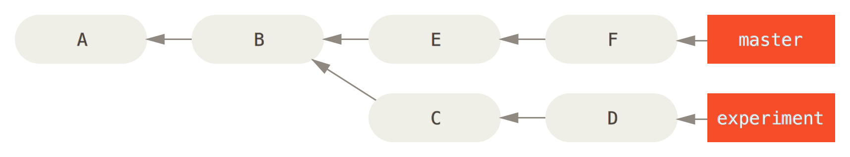 你想要查看 experiment 分支中还有哪些提交尚未被合并入 master 分支。 你可以使用master..experiment 来让 Git 显示这些提交。也就是 “在 experiment 分支中而不在 master 分支中的提交”。 为了使例子简单明了,我使用了示意图中提交对象的字母来代替真实日志的输出,所以会显示:
