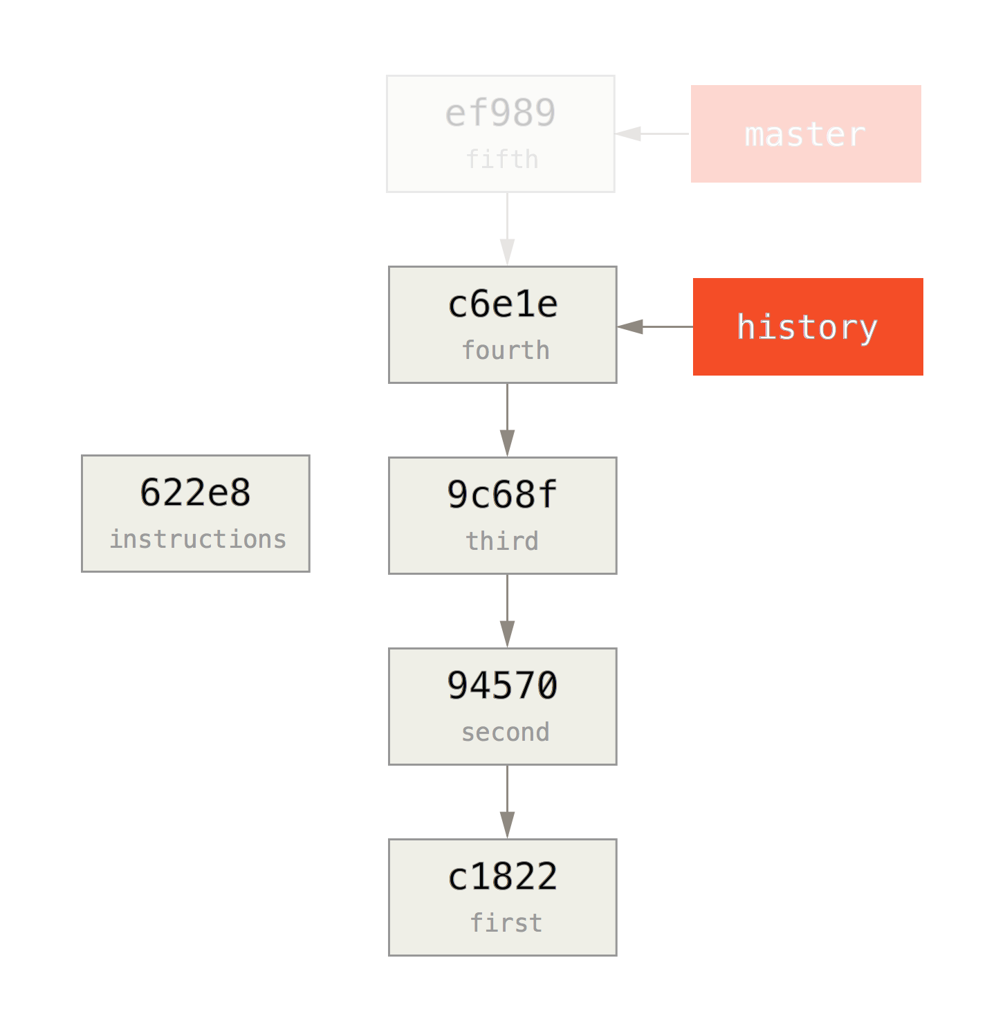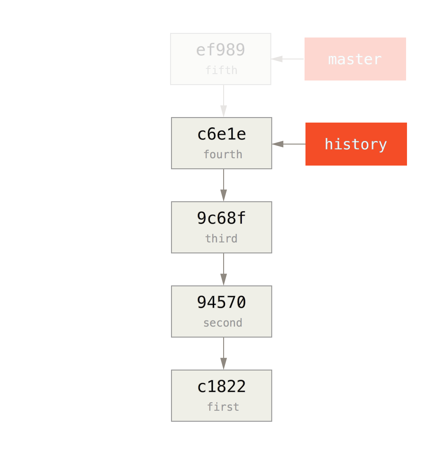 我们想将其分成拆分成两条历史。 第一个到第四个提交的作为第一个历史版本。 第四、第五个提交的作为最近的第二个历史版本。